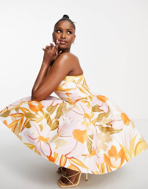 ASOS DESIGN - Gul og lagdelt bandeau-miniskaterkjole med blomstermønster