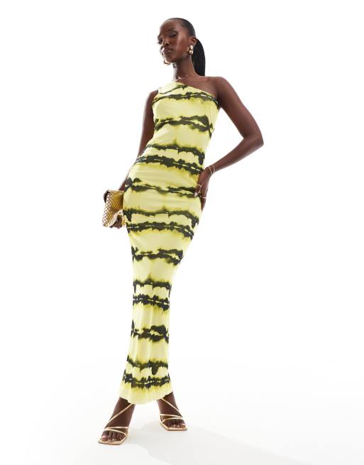 ASOS DESIGN - Gul oneshoulder-maxikjole i mesh med leopardprint