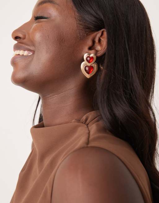 ASOS DESIGN - Guldfarvede hængeøreringe med dobbelte hjerter i resin