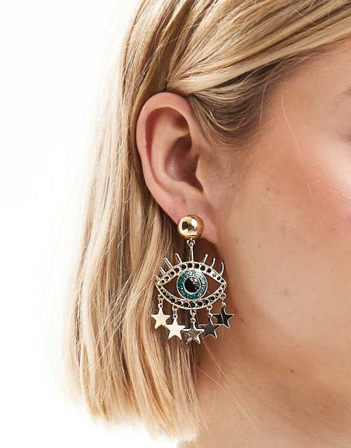 ASOS DESIGN - Guldfarvede hængeøreringe med øje- og stjernedetaljer