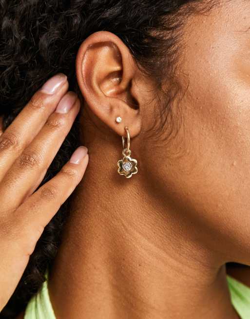 ASOS DESIGN - Guldfarvede hoop-øreringe med blomstervedhæng