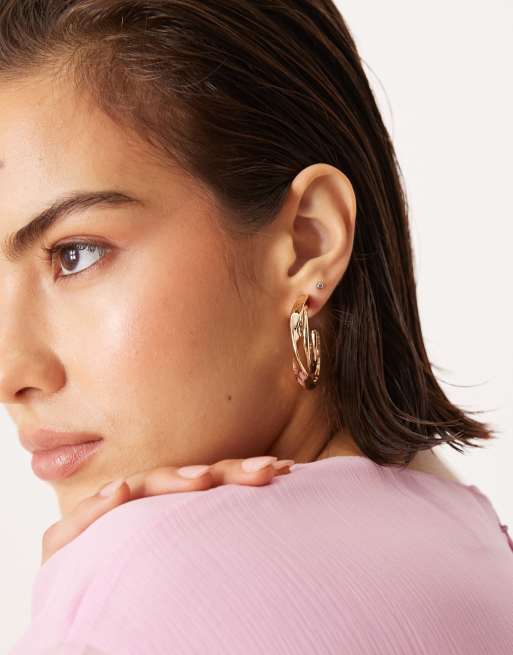 ASOS DESIGN - Guldfarvede hoop-øreringe med dobbelt snoet rækkedesign