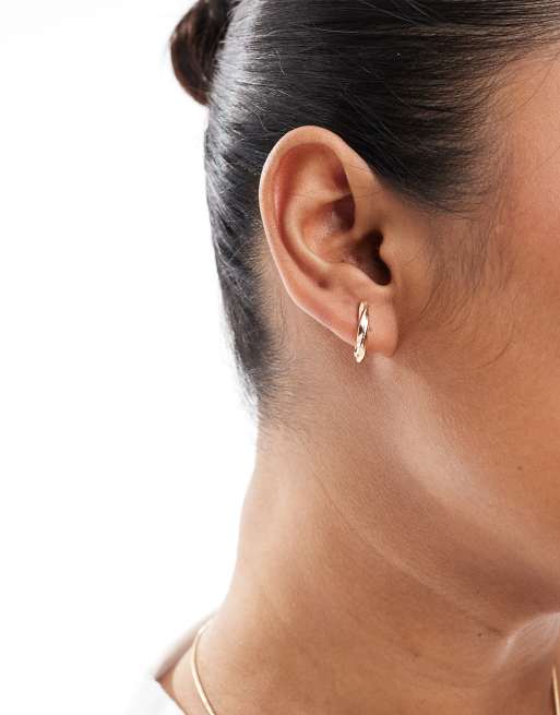 ASOS DESIGN - Guldfarvede hoop-øreringe med snoet huggie-detalje