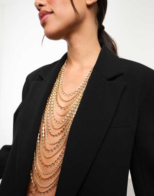 ASOS DESIGN - Guldfarvede kropsseler med draperet krystalkæder