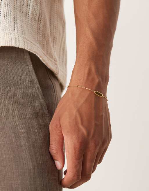 ASOS DESIGN - Guldfarvet armbånd med kuglekæde og sekskantet vedhæng i sterlingsølv