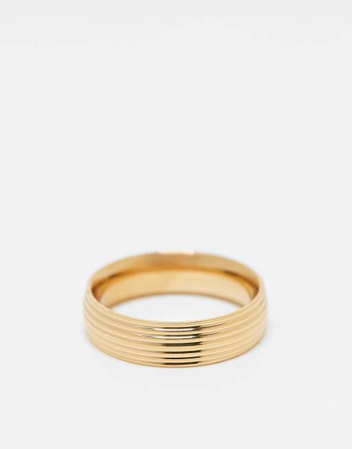 ASOS DESIGN - Guldfarvet båndring i vandtæt rustfrit stål med riller