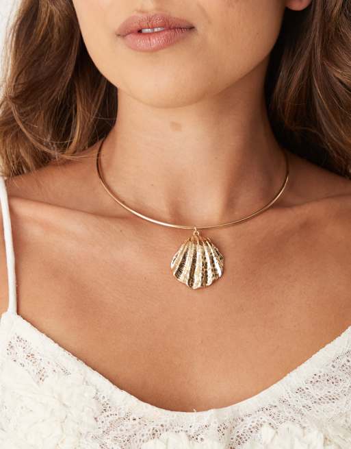 ASOS DESIGN - Guldfarvet choker-halsbånd med stort skalvedhæng