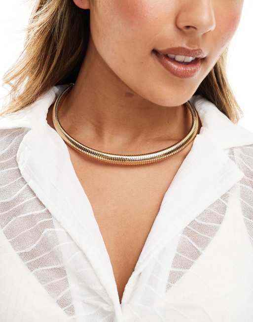 ASOS DESIGN - Guldfarvet choker med ribbet design