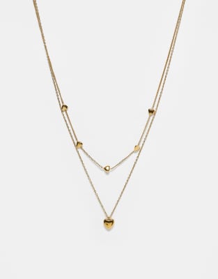 ASOS DESIGN - Guldfarvet halskæde i vandafvisende rustfrit stål med flere rækker og hjertevedhæng
