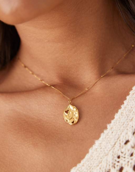 ASOS DESIGN - Guldfarvet halskæde i vandafvisende rustfrit stål med prik-streg-kæde og fladt og smeltet vedhæng