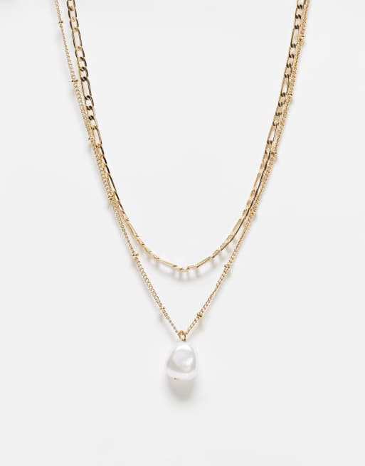 ASOS DESIGN - Guldfarvet halskæde med figarokæde og perledetalje