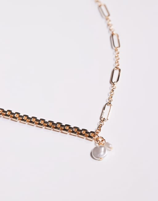 ASOS DESIGN - Guldfarvet halskæde med forskellige kædeled og imiterede perler