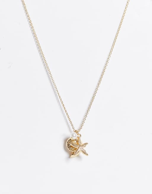 ASOS DESIGN - Guldfarvet halskæde med muslingeskal og søstjerne-vedhæng