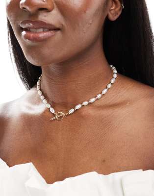 ASOS DESIGN - Guldfarvet halskæde med T-stang og imiterede perler