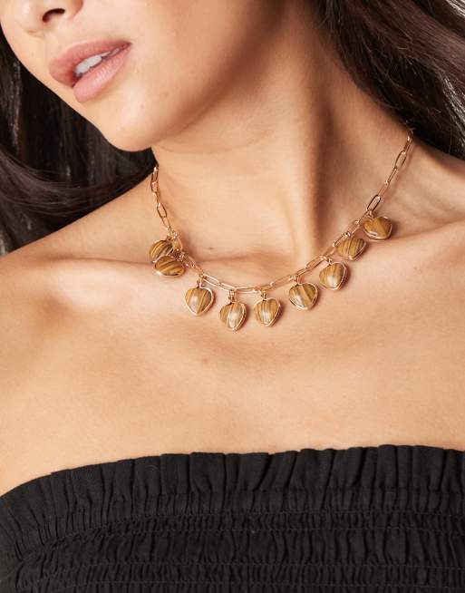 ASOS DESIGN - Guldfarvet halskæde med vedhæng med imiterede tigerøjesten