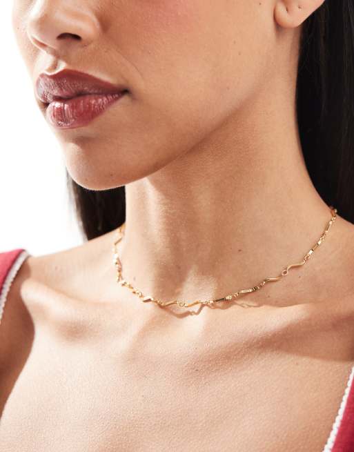 ASOS DESIGN - Guldfarvet og kort halskæde med bølgedesign og 14 karat guldbelægning