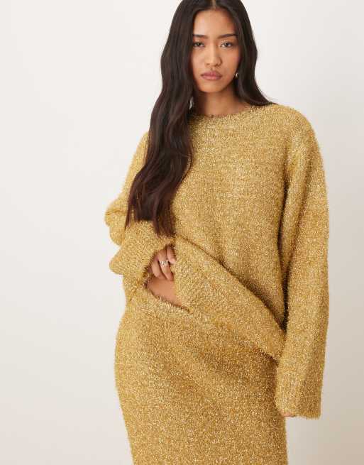 ASOS DESIGN - Guldfarvet oversized trøje i lametta - Del af sæt