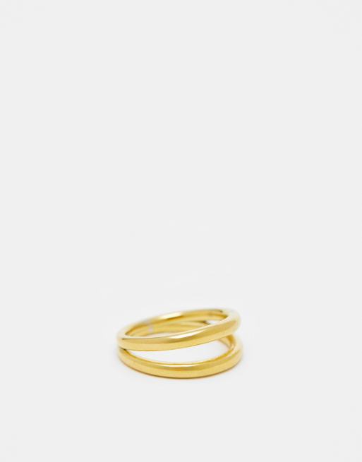 ASOS DESIGN - Guldfarvet ring i vandtæt rustfrit stål med dobbelt bånddesign
