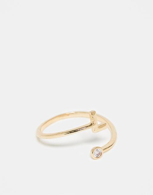 ASOS DESIGN - Guldfarvet ring med slå-om-design, kubisk zirkonia-sten og 'L'-initial i gavepose