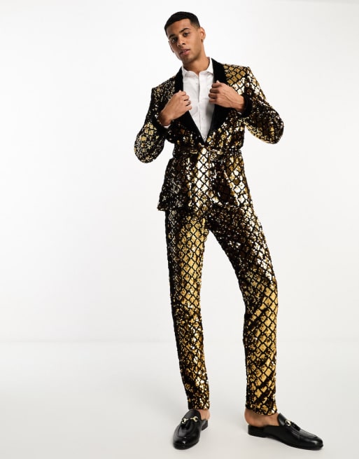 ASOS DESIGN - Guldfarvet skinny-jakkesæt med diamantformede pailletter