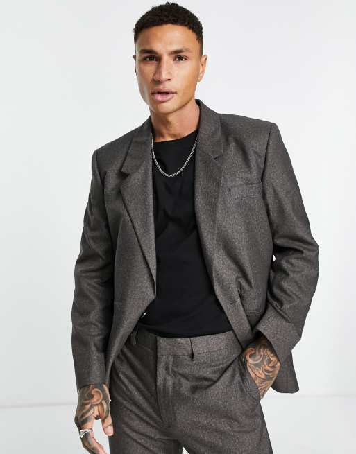 ASOS DESIGN - Habitjakke med powerskulder og elastisk talje i børstet grå