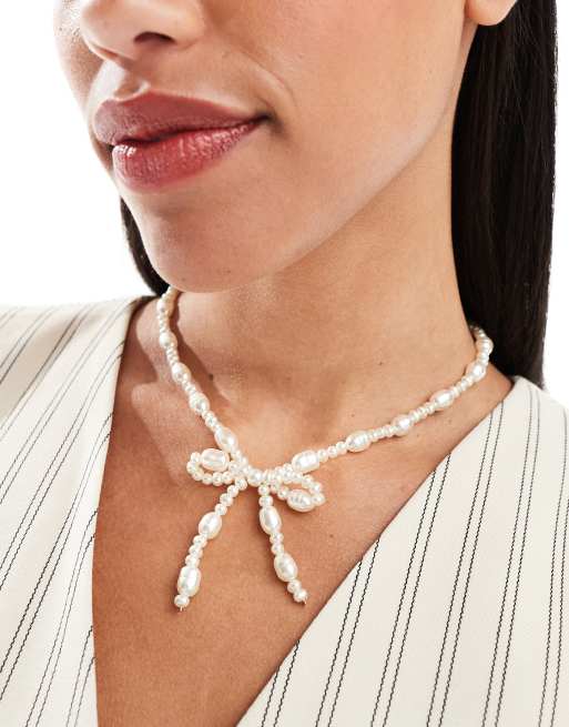 ASOS DESIGN - Halskæde med imiterede ferskvandsperler og sløjfedesign