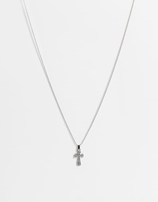 ASOS DESIGN - Halskæde med krystalkors-vedhæng i sølvtone