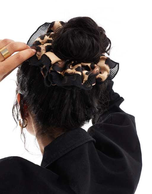 ASOS DESIGN - Hårelastik med leopardprint og kontrastfarvet flæsekant