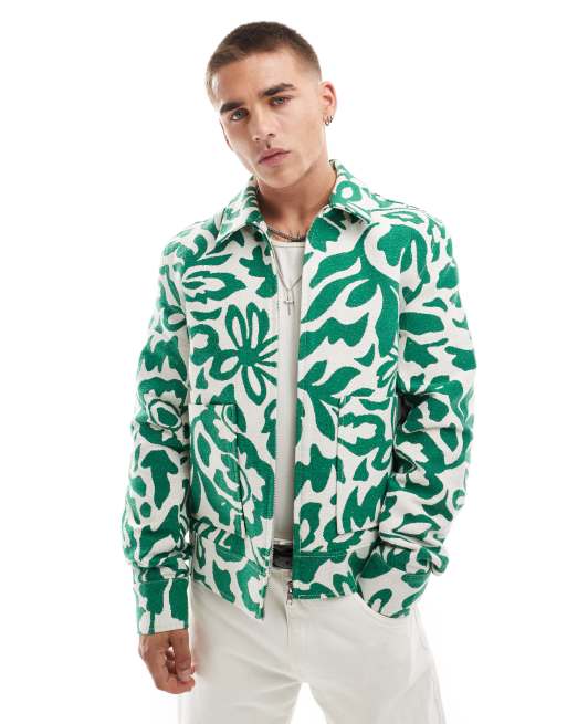 ASOS DESIGN - Harrington-jakke med grønt blomstermønster i jacquard