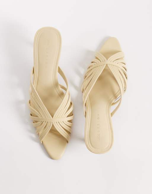 ASOS DESIGN - Healing - Lysegule mules med mellemhøj hæl og stropper samt peeptoe