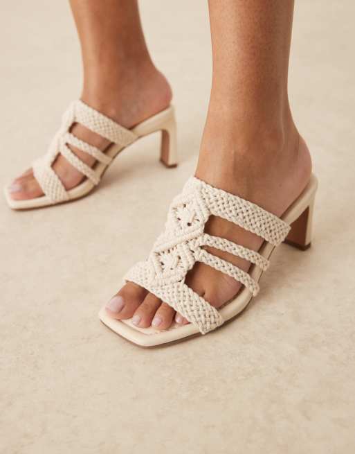 ASOS DESIGN - Heidi - Råhvide mules med mellemhøj hæl og vævede detaljer