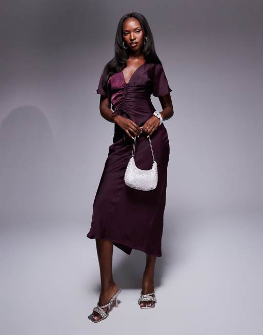 ASOS DESIGN - Hindbærrød midikjole med rynker foran i satin