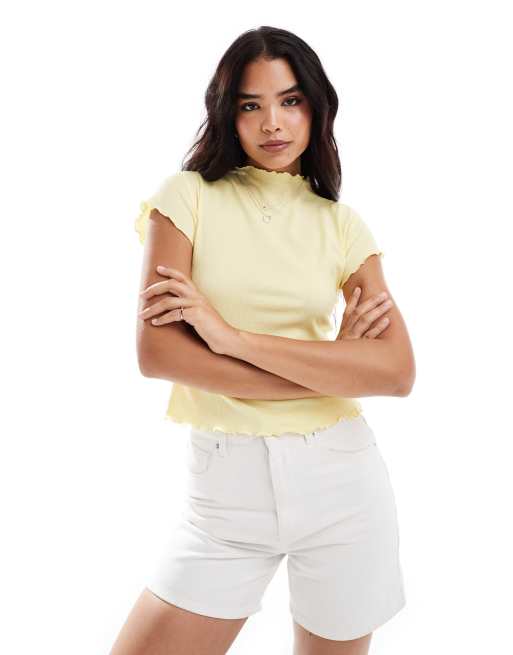 ASOS DESIGN - Højhalset citrongul top med tekstur