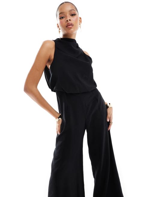 ASOS DESIGN - Højhalset jumpsuit med vide ben i sort