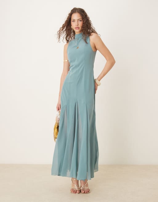 ASOS DESIGN - Højhalset maxikjole i forvasket blå med chiffon-kiler