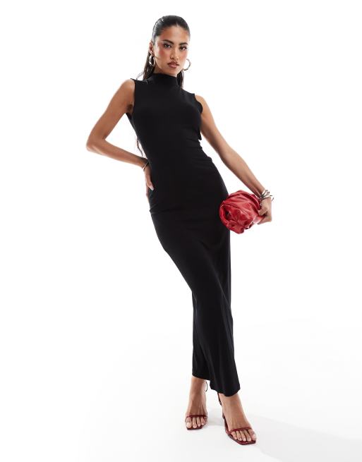 ASOS DESIGN - Højhalset maxikjole uden ærmer med sløjfe på ryggen og søjlesnit i sort