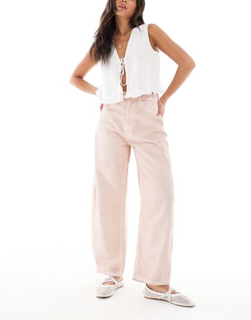 ASOS DESIGN - Højtaljede jeans med tøndeformede ben i rosa vask