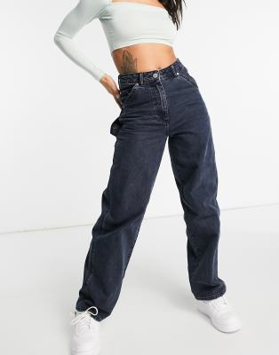ASOS DESIGN - Højtaljede 'worker' jeans i vasket marineblå