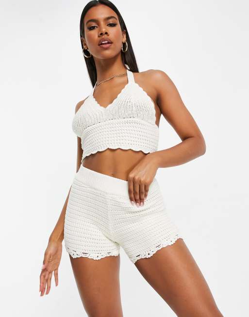ASOS DESIGN - Hæklede shorts i cremehvid - Del af sæt
