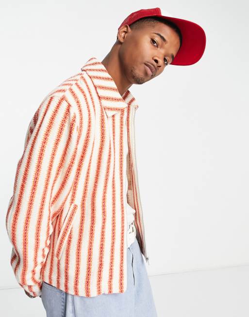 ASOS DESIGN - Hæklet harrington-jakke med orange/hvide striber