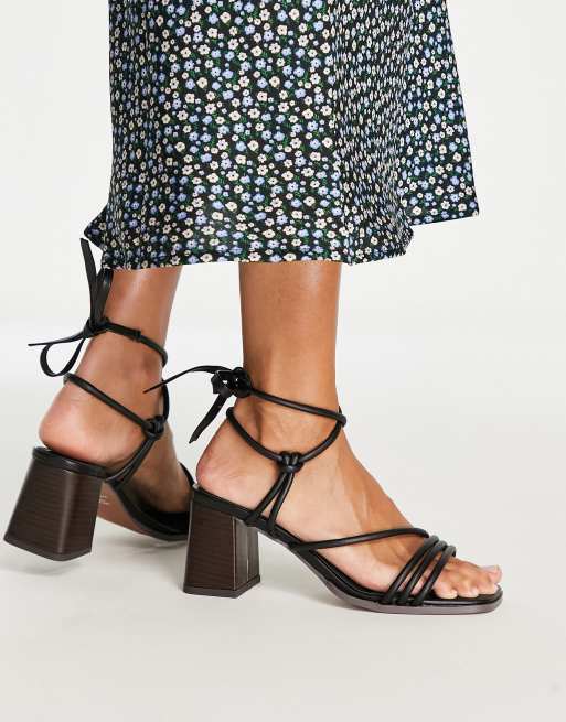 ASOS DESIGN - Hollow - Sorte sandaler med mellemhøj hæl og bindebånd om benet
