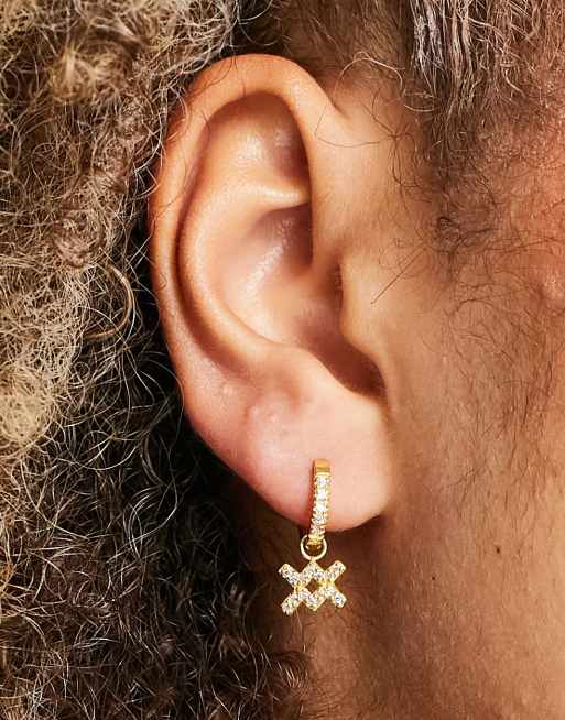 ASOS DESIGN - Hoop-øreringe i guldbelagt sterlingsølv med rhinstens-udsmykket Vandmanden-vedhæng