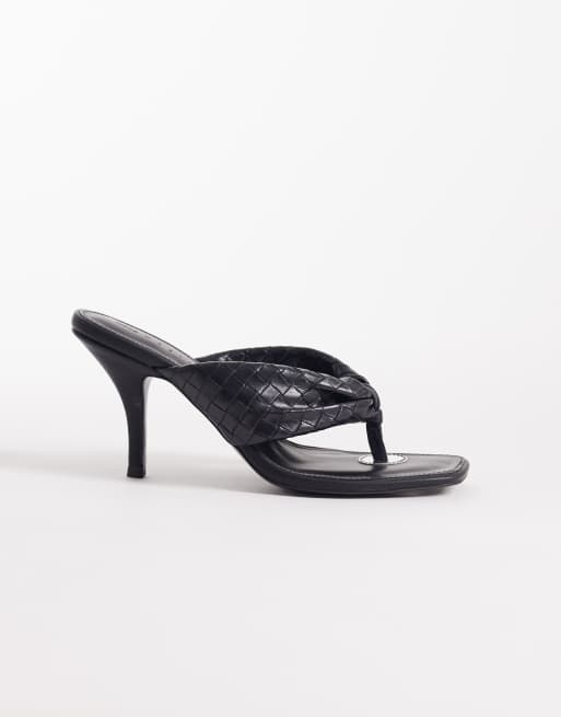 ASOS DESIGN - Hot-stuff - Sorte sandaler med hæl og flettet tårem