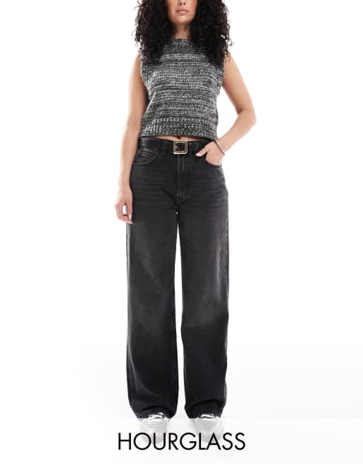 ASOS DESIGN Hourglass - Sorte og forvaskede dad-jeans med vide ben