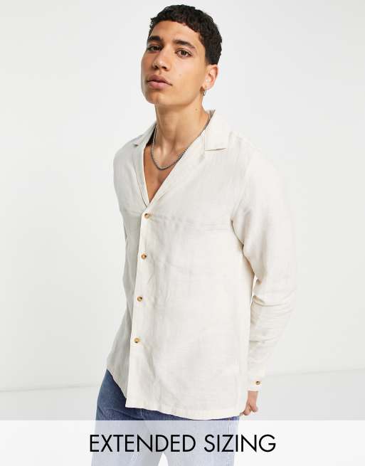 ASOS DESIGN - Hørskjorte med almindelig pasform og dyb reverskrave i beige hør