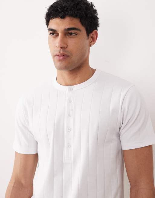 ASOS DESIGN - Hvid afslappet T-shirt med henley-hals.
