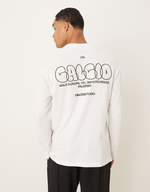 ASOS DESIGN - Hvid afslappet T-shirt med lange ærmer og print på ryggen