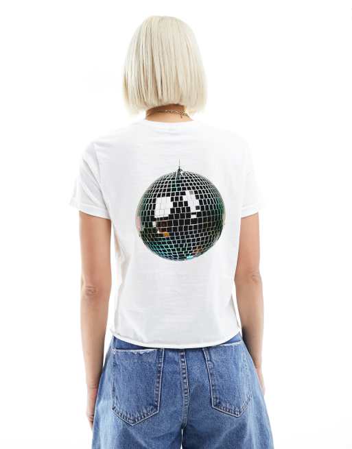ASOS DESIGN - Hvid baby-t-shirt med grafisk discoprint