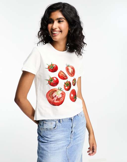 ASOS DESIGN - Hvid baby-t-shirt med grafisk tomatprint