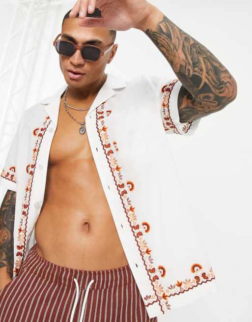 ASOS DESIGN - Hvid bomuldsskjorte med broderet kant i Regular Fit